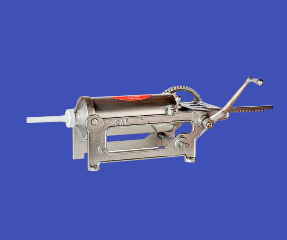 Essa máquina é utilizada para o ensaque e embutimento de carne bovina, suína, de frango e peixes, entre outros tipos.